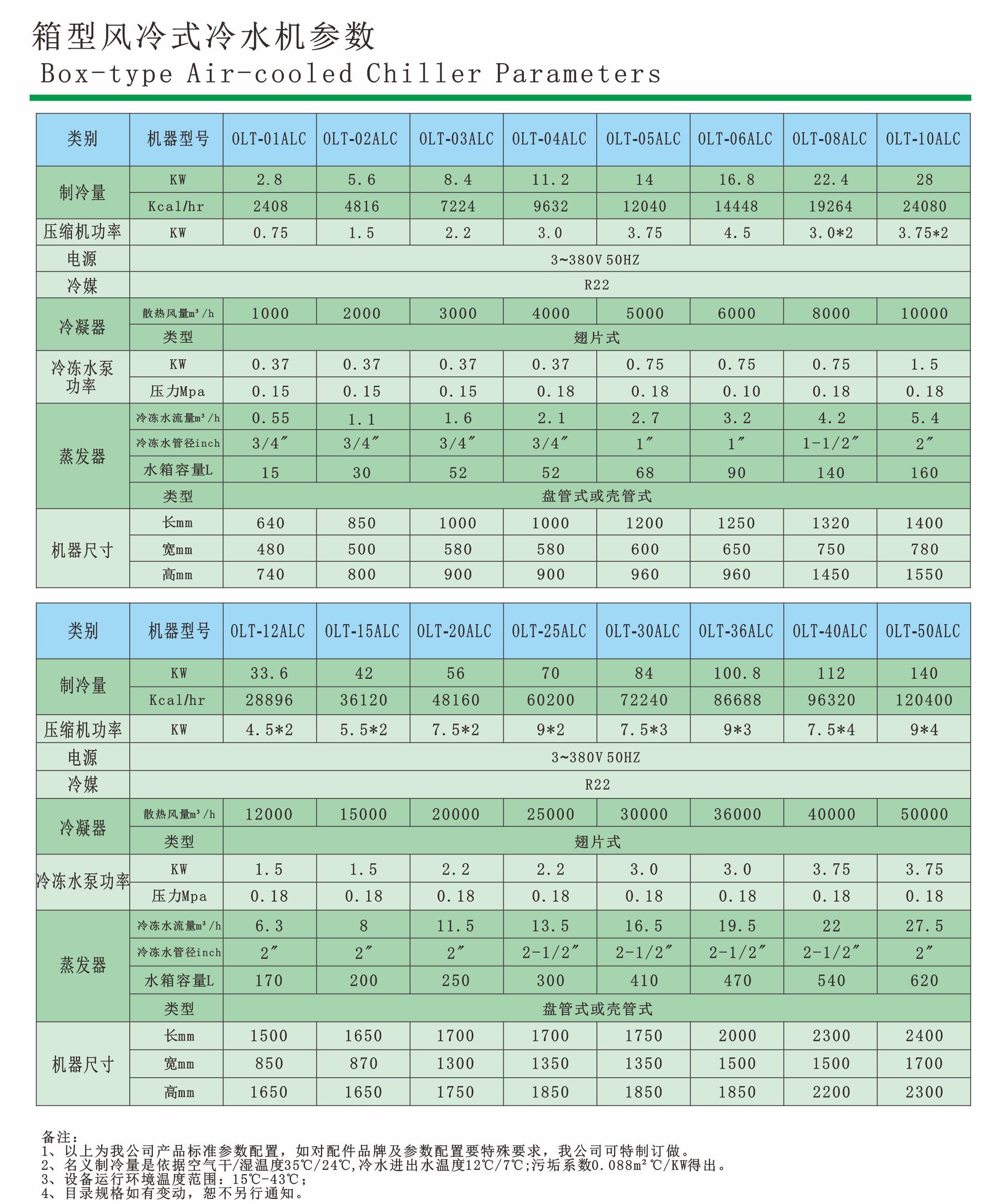 4、箱型風冷式冷水機主要應用行業:激光技術、焊接、塑料成型、注塑、擠塑、吹瓶、熱力塑型、機械切削加工、非切削加工、鑄造、表面處理、電鍍、電泳、醫療設備、電子行業、電路板生產、電子蕊片制造、化工、造紙、制藥業、食品加工業、鋁型材、鋁合金、鋼化玻璃、鍍膜玻璃生產、超聲波清冼、首飾加工、皮革、皮草加工、油墨生產、養殖業 。