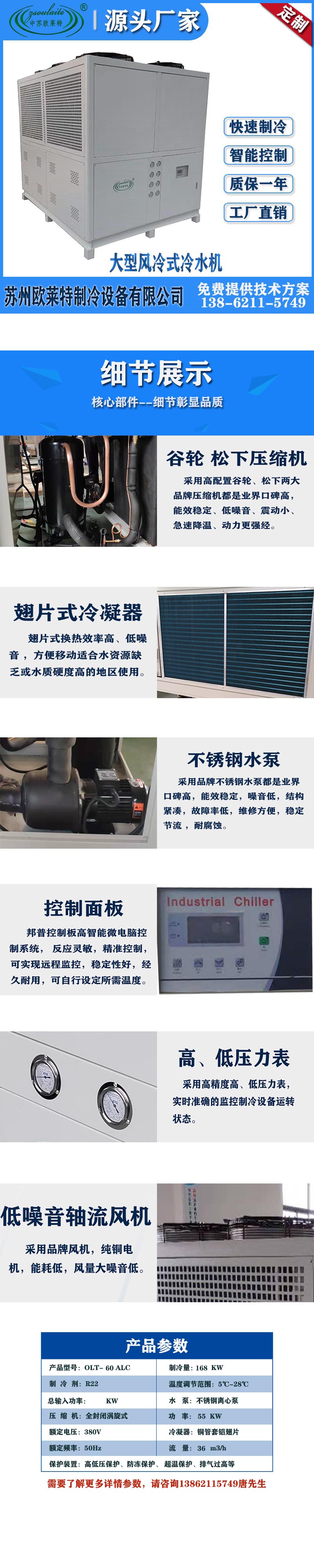 60HP風冷式冷水機,168KW制冷量冷卻機,蘇州風冷式冷凍機廠家--蘇州歐萊特制冷設備有限公司,廠家直銷,價格優惠,歡迎來電洽談。